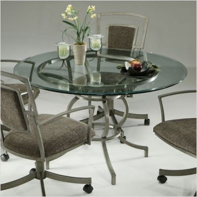 HP 510-+VB 4819 Base Finish: Vintage Bronze, Table Style: 48", 1" bevel This transitional eating table offers a tasteful fusion of traditional and contemporary fashions. The fascinating design of the Hollywood II Dining Table will be an attention grabbing addition to the leisure of your d cor. Available in four finishes, the table base is accompanied by using a tumbler top in a few choices. This dining desk effortlessly sit downs four. Purchase the table on my own, or purchase with the aspect chairs for a full dining desk set. Features: -Dining desk base available in a autumn rust, phantom, rustic silver, and antique bronze end. -Table prime is glass and to be had in a number of models. -48'' Glass desk high comes 1/2'' thick with 1'' bevel or with only a 1'' bevel. -54'' Glass table top comes 1/2'' thick with 1'' bevel. -Dining table simply sits four. -Table base is hand-painted and hand-finished for a novel seem and sophisticated safety once morest day via day wear and tear. -Innovative design allows for outstanding durability. Dimensions: -Table top dimensions: 48'' or 54'' diameter. -Table base dimensions: 28.25 H x 34'' W x 34 D..