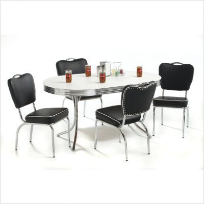 .Many customers was gave reviews and ratings to Retro Oval Dining Set in Bright Chrome Vinyl: Omni Black. If you want to read details to make your decision on this product. Click to see all customers reviews & ratings for Retro Oval Dining Set in Bright Chrome Vinyl: Omni Black here ! !