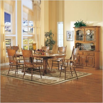 5279Series Features: -Includes dining desk, 4 aspect chairs and two arm chairs. -Traditional type. -Medium warm oak. -Oak timber and veneers. -Turned legs, easy classic molding. -Smooth tops with beveled facets. Specifications: -Side Chair: 42'' H x 16.5'' W x 20.75'' D. -Dining Table: 30'' H x 48'' W x 72'' D. -Arm Chair: 42'' H x 16.5'' W x 20.75'' D..Molina 7 Piece Dining Set with 18" Center Leaf in Light Oak Feature