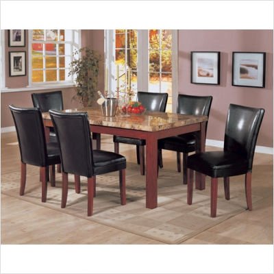 Palo Alto 7 Piece Dining Set with Glassy Mable Top in Medium Brown Cherry Finish Review