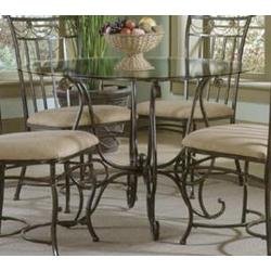 The Camelot II Dining Table (model 4356-810) from Hillsdale is an elegant solution for a smaller eating space, breakfast nook, or sitting room. Graceful scollwork on the legs curls as a lot as forged rosette medallion accents and is derived collectively in a center, ball fashion finial. On top of the black gold completed base is a 42 diameter glass high. Pair with a suite of Camelot II Dining Chairs fora basic and subtle dinette set. This glass top dining desk is usually in inventory and ships to you at no extra cost.Features:42 DiameterNon-Tempered 8 mm Glass TopSturdy Steel ConstructionDimensions:Table Base (Hillsdale Model# 4356-810): 28.